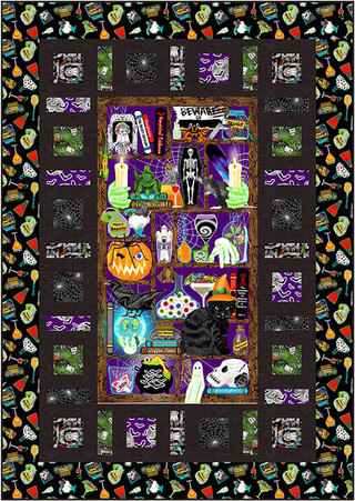 Creepy & Kooky is a glow-in-the-dark collection that will bring all the witches over this Halloween. Bats fly around in full moonlight as witches cackle in the distance. Their potion making supplies are fully stocked with bat wings, eyeballs, frogs’ breathe and other mysterious tinctures. Ghosts spook people as they peer up over tombstones. Menacing jack-o-lanterns light up this Halloween. Creepy & Kooky will be the perfect eerie touch to add to your next quilt project.